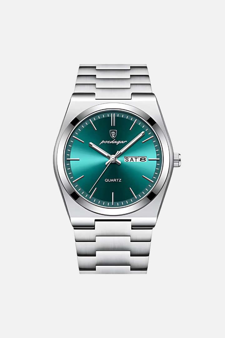 Onze horloges zijn gebouwd om het dagelijks leven te doorstaan. Met krasbestendig mineraalglas, professioneel roestvrij staal en 5 ATM waterbestendigheid behouden ze hun elegantie tijdens dagelijks gebruik en bij onverwachte stoten.